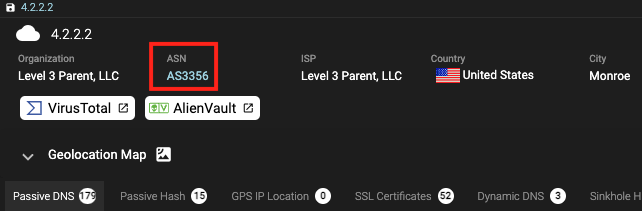 The ASN number can be clicked to pivot into the ASN details