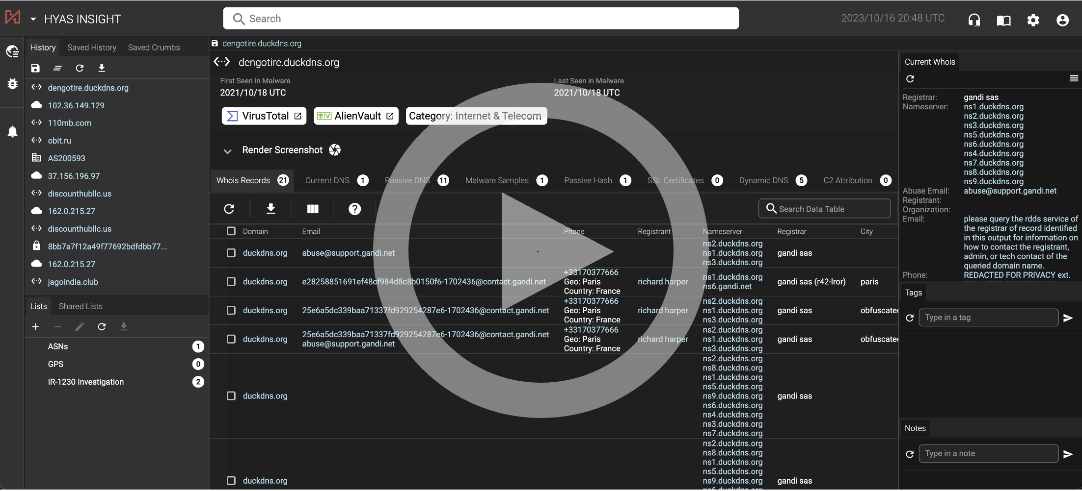 HYAS Insight Click-Through Training offers a streamlined and interactive learning experience designed to familiarize users with the functionalities and capabilities of HYAS Insight, an advanced cyber threat intelligence platform. Through this training, users can navigate through various features and modules of HYAS Insight, gaining practical insights into threat hunting, incident response, fraud detection, and infrastructure analysis.