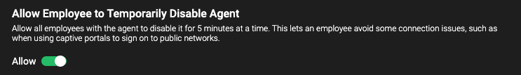 We are pleased to announce an exciting new feature in the latest update of the HYAS Protect Agent. Administrators now have the ability to grant end-users the option to temporarily disable the HYAS Protect Agent for 5 minutes.