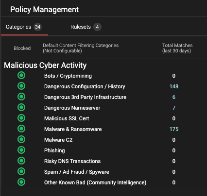 Last month, we introduced our enhanced content filtering features, and this month, we’re taking it a step further. Users can now quantify and delve into the various subcategories within Malicious Cyber Activity directly from the Policy Management Page.