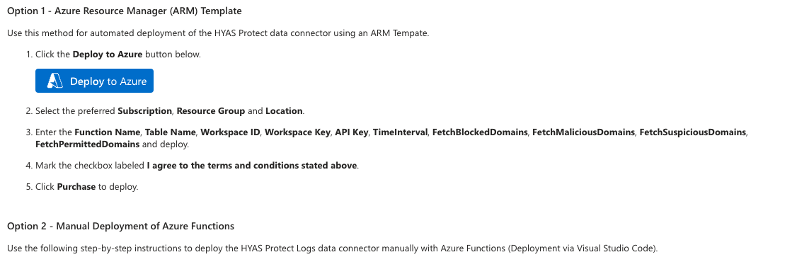 Follow the steps below to deploy the HYAS Protect Integration with Microsoft Sentinel