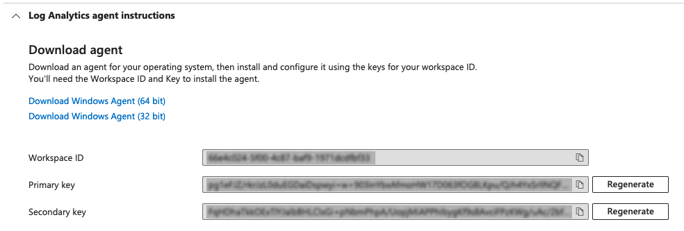 Obtaining from Workspace ID: Navigate to Microsoft Sentinel and select your Workspace then: Settings>Workspace settings>Settings>Agents>Log Analytics agent instructions