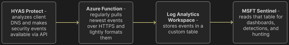 HYAS Protect ↔ Microsoft Sentinel High-Level Integration Architecture