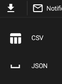 By selecting the alert(s) you wish to download and clicking the download icon, you may download the alerts in either CSV or JSON format.