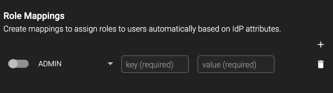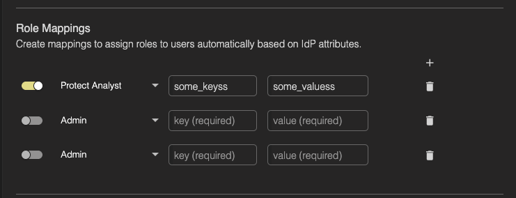 The final step in configuring SSO is assigning specific users to specific HYAS Protect roles. This can be accomplished in the Role Mappings section.