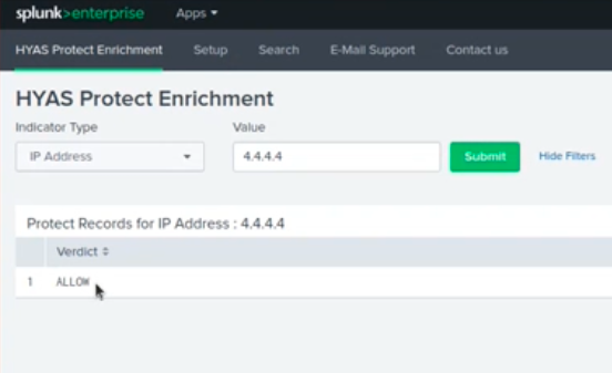 HYAS Protect for Splunk also comes with multiple commands and a lookup so that you can incorporate Protect queries into your own searches and dashboards. Below is usage documentation for all four (4) verdict types that can be solicited.