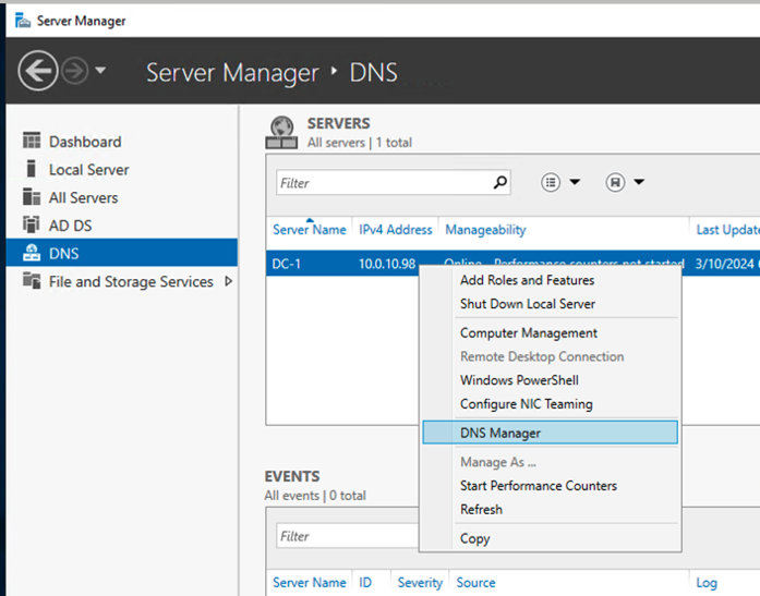 Navigate to your Windows DNS Server and right-click and select “DNS Manager”