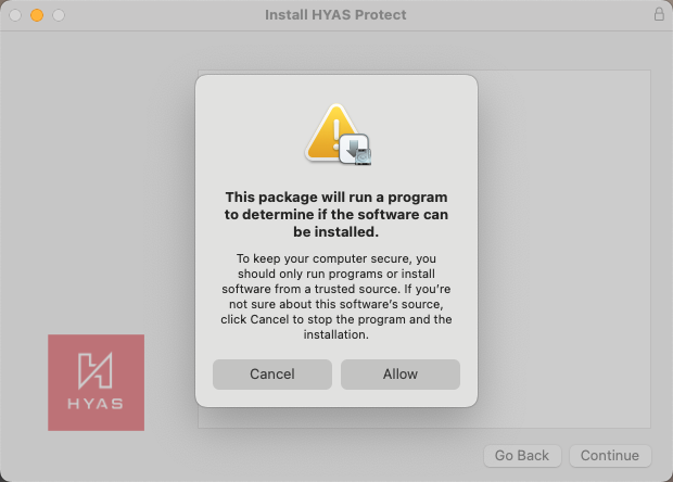 Due to changes introduced in macOS 15, clients must install the HYAS SSL certificate on their machines to enable a fully silent installation. This only applies to machines that have not installed previous versions of the HYAS Protect Agent.