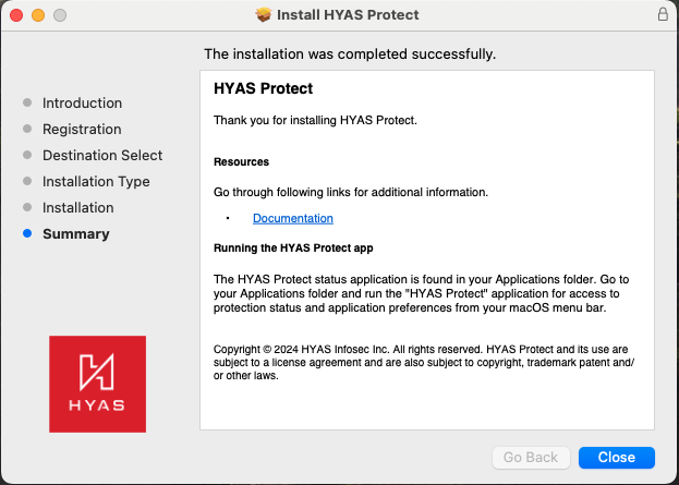 After deploying the HYAS Protect Agent on macOS, it’s important to verify that the installation was successful and the Agent is functioning as expected. Use the checklist below to confirm that the Agent is actively protecting the device: